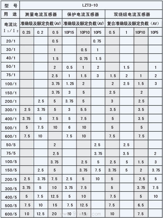 依據(jù)電流變比,準(zhǔn)確級(jí)和額定負(fù)載的不同,該系列電流互感器分為以下幾種類(lèi)型,具體參數(shù)詳見(jiàn)各型號(hào)對(duì)應(yīng)的參數(shù)表。