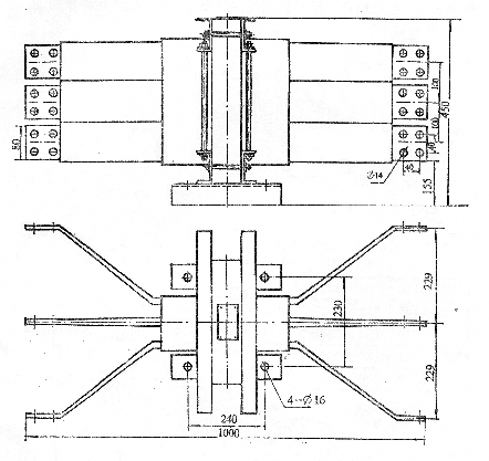 (5) LXM-1,LXM-2,LXM-3母排式零序互感器。該型互感器與DD11/60類繼電器配合使用,一次零序電流2.4A,二次電流0.06A,二次負荷10Ω。