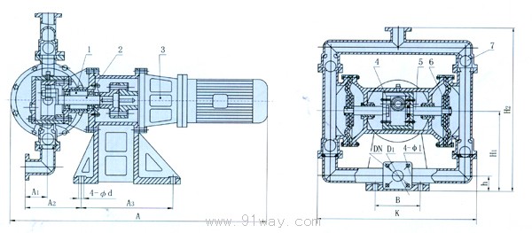 DMB電動隔膜泵外形及安裝公尺寸