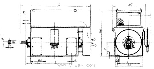 YKK、YKK-W系列三相異步電動采用箱式結構,機座為鋼板焊接而成(北京電機總廠的YKK355~400機座為鑄鐵機座),電動機頂部安裝封閉空-空冷卻器,拆裝方便,利于維護和修理,電動機的安裝型式為IMB3,電動機具有一個圓柱形軸伸,采用聯軸器與被驅動的機械聯接。