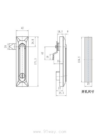 MS861電柜門鎖止口高度 18.5 \ 31