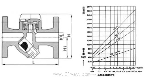 CS49H熱動(dòng)力式疏水閥結(jié)構(gòu)排量圖