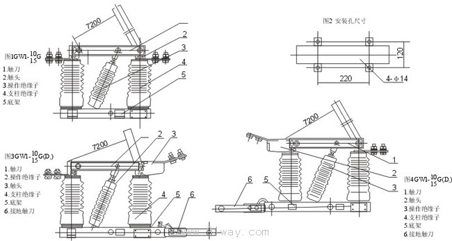GW1-10/15型戶外交流高壓隔離開關型號及規格 GW1-10/15型戶外交流高壓隔離開關基本技術參數 安裝尺寸