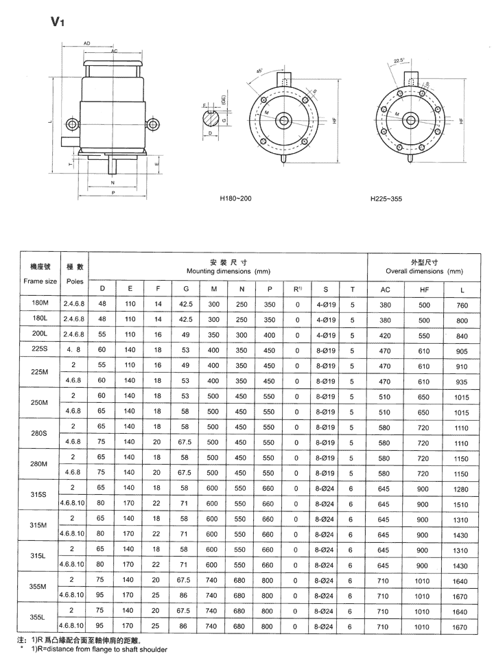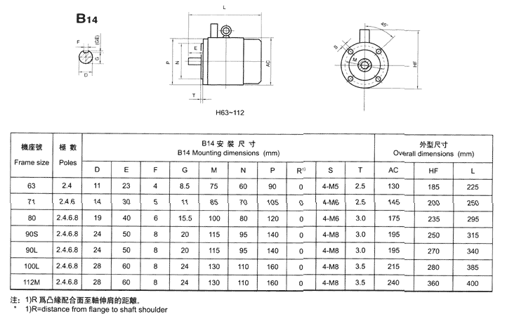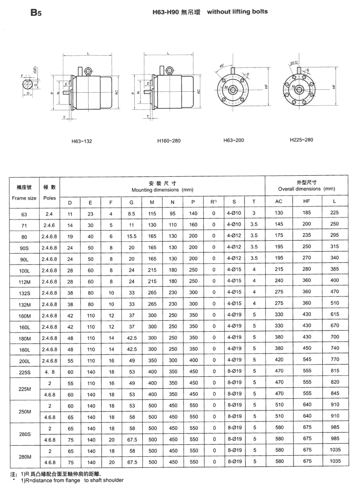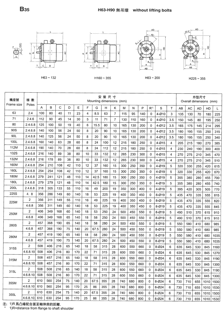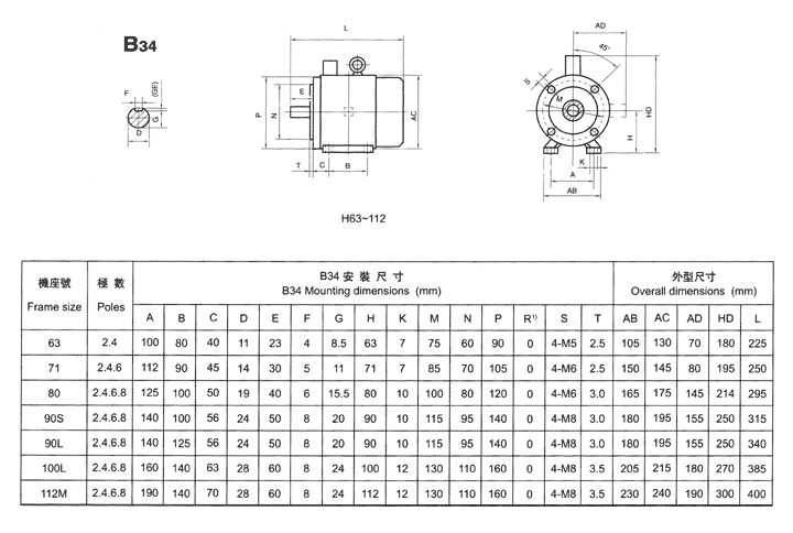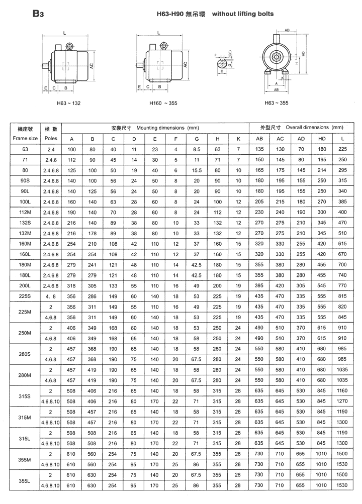 電機安裝型式及機械參數: B3 B5 B35 B14 B34 V1
