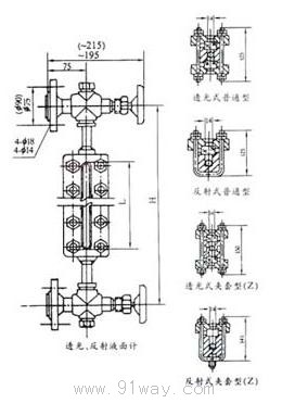 透光式玻璃板液位計主要技術參數: 測量范圍(安裝中心聚L):300、500、800、1100、1400、1700mm |