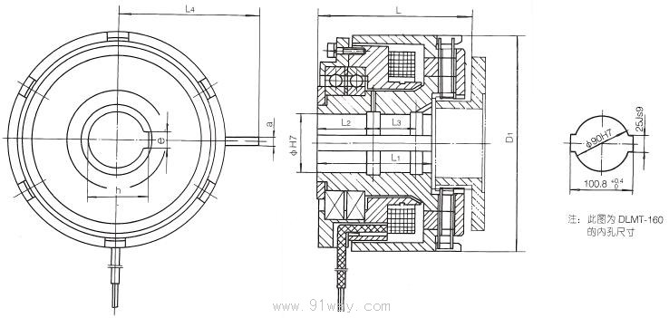 安裝示意圖與安裝尺寸 mm 注:齒輪參數供用戶加工齒輪套使用,齒輪套為不導磁材料。DLMT系列濕式多片電磁離合器
