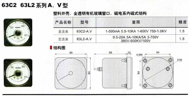 63C2,63L2系列A,V型面板儀表