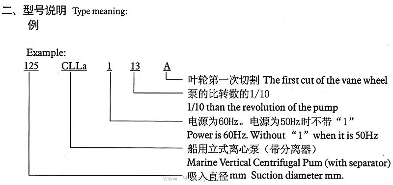 CLLA型船用立式離心泵型號說明