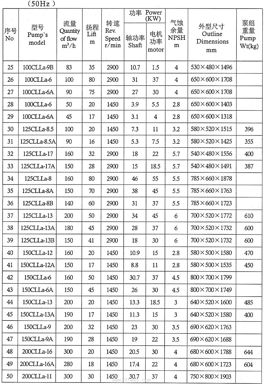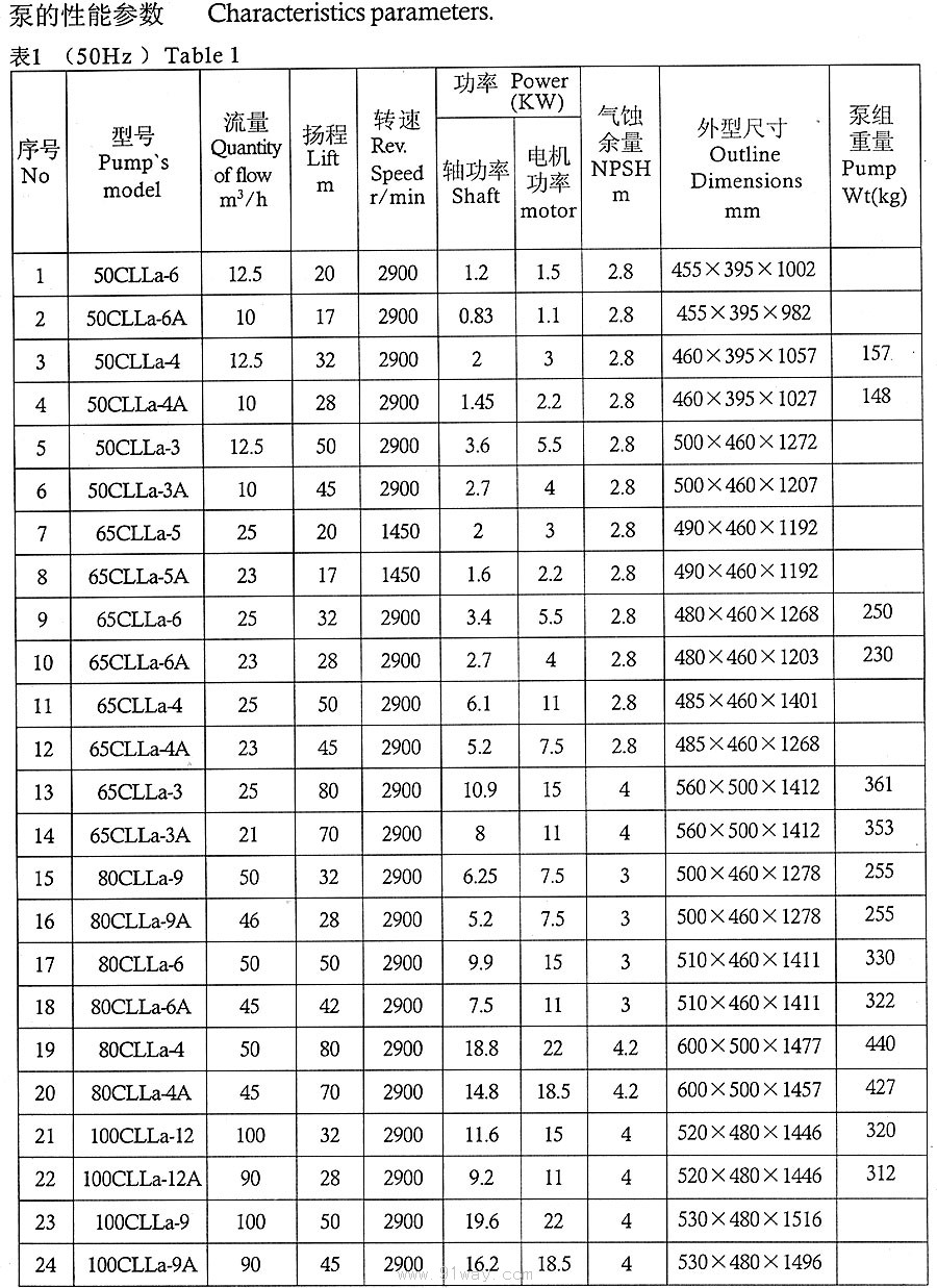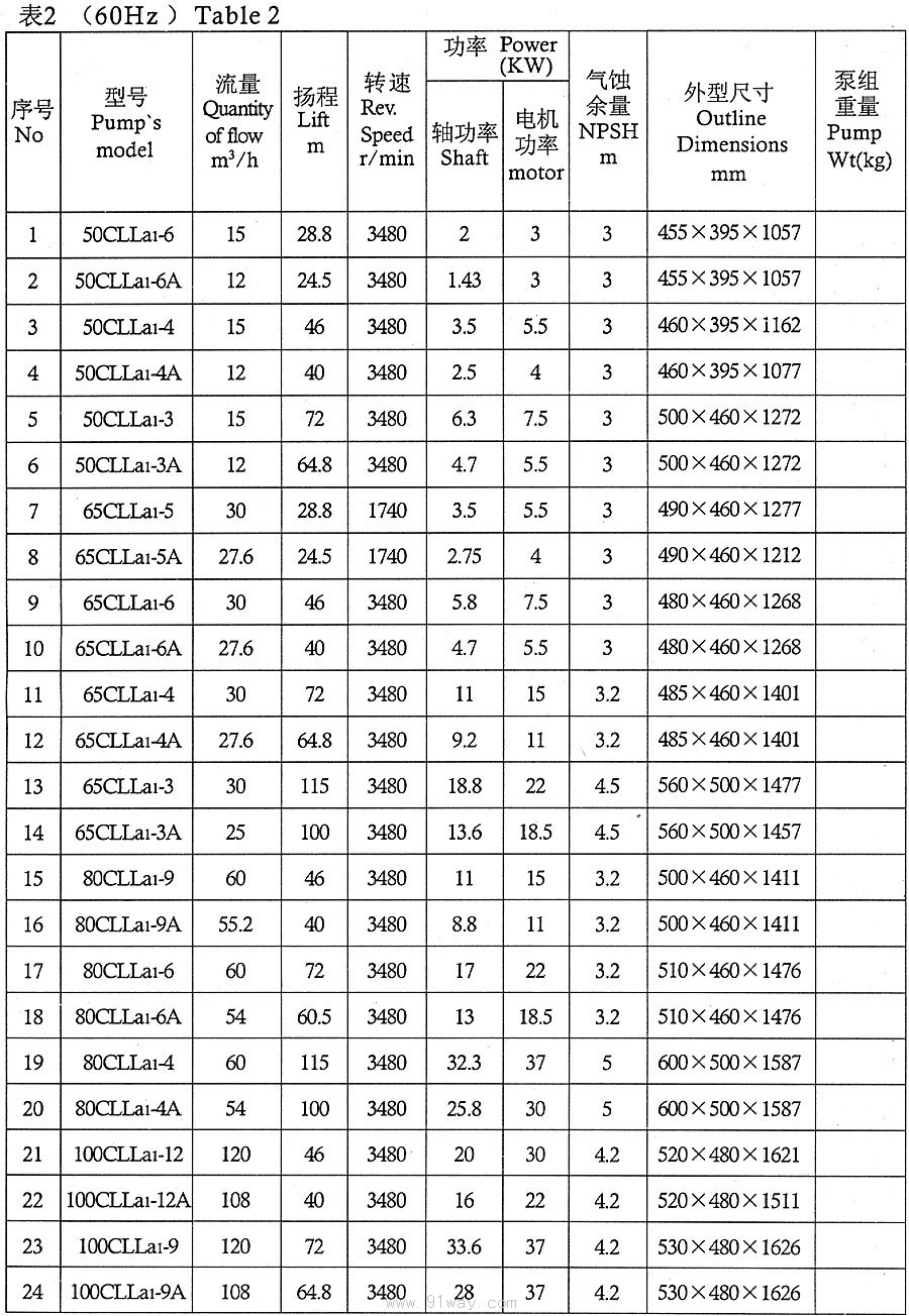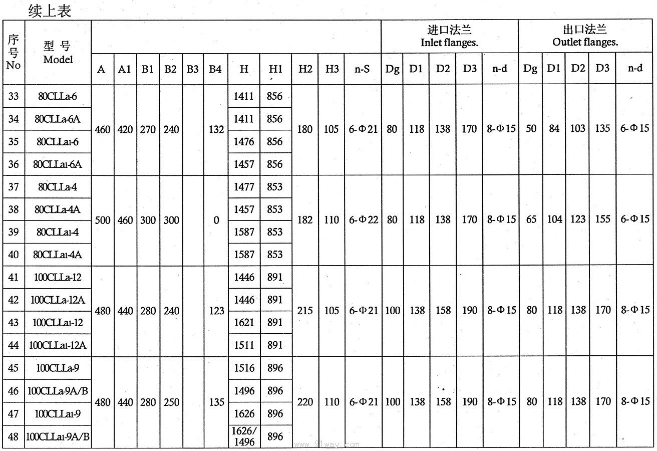 CLLA型船用立式離心泵技術參數2