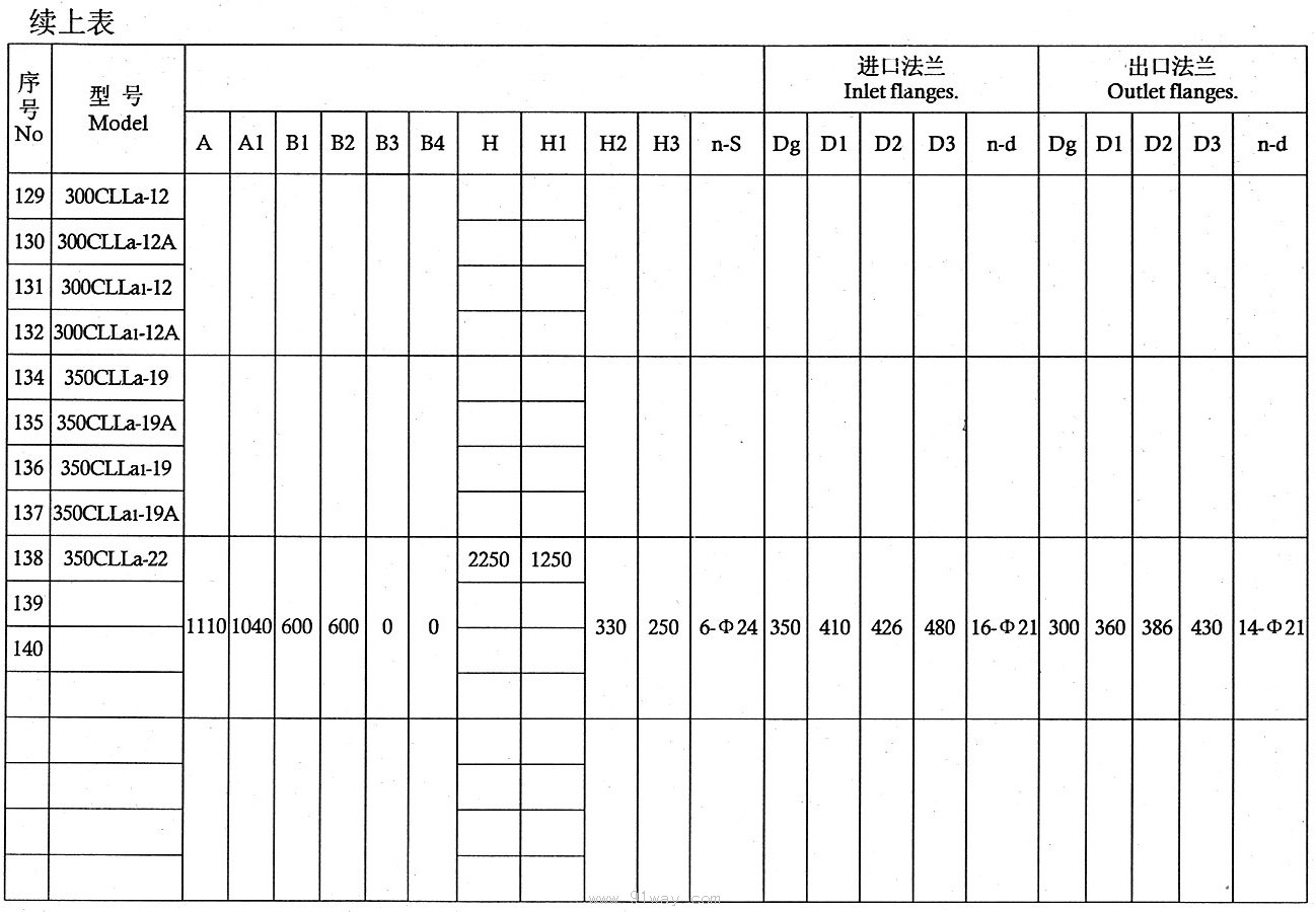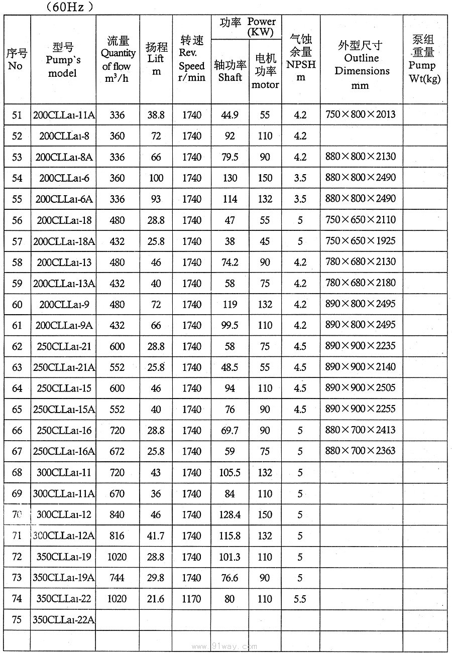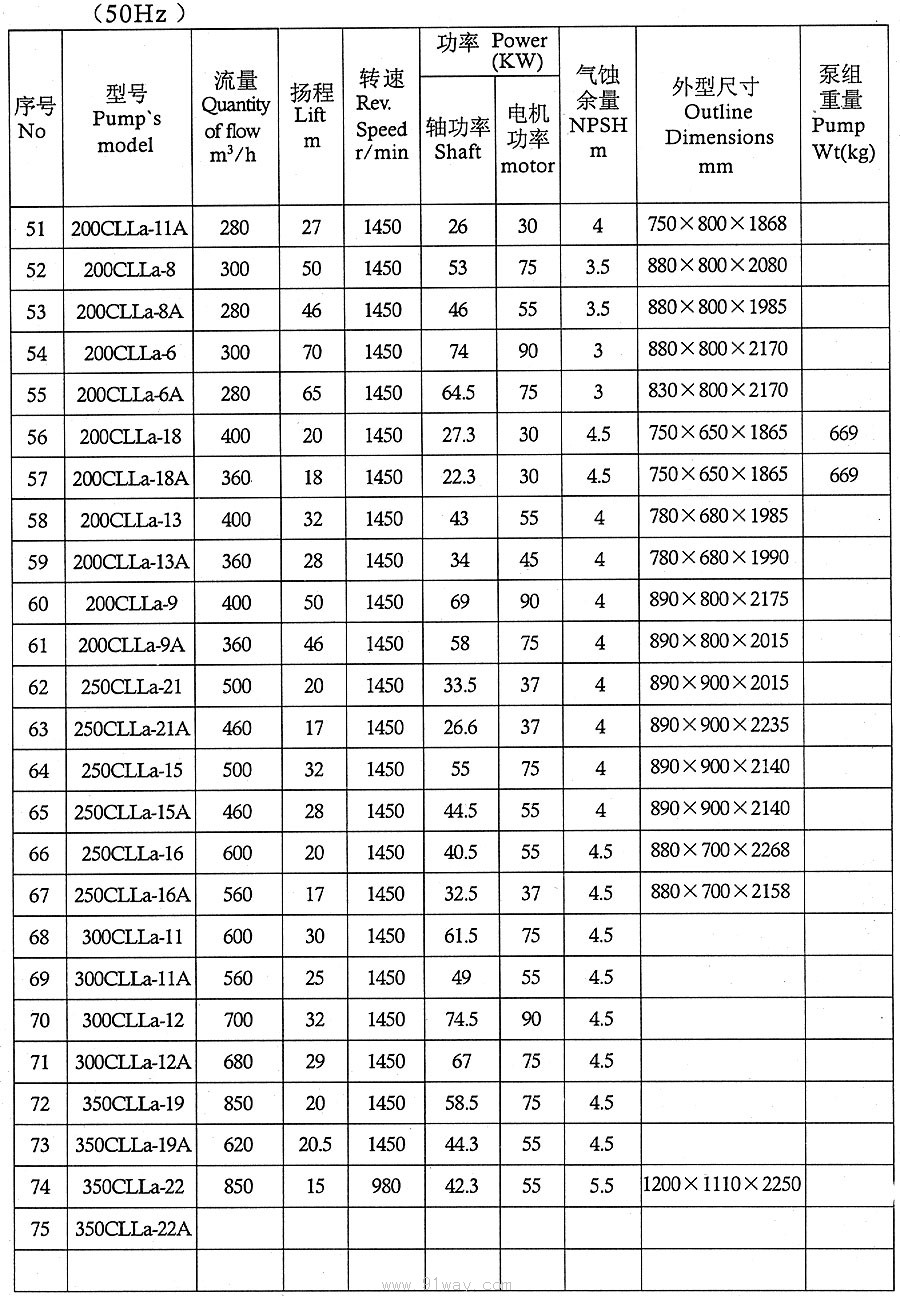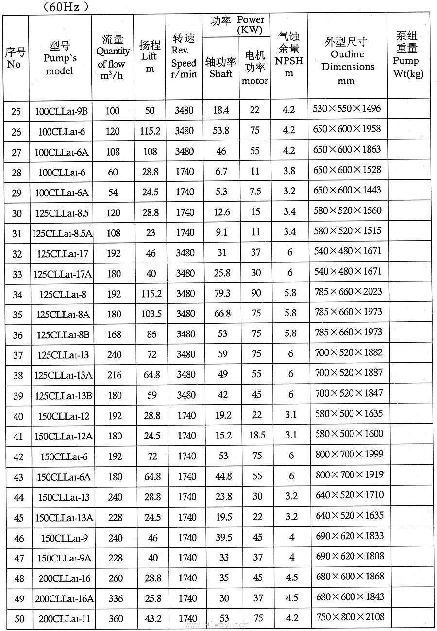 CLLA型船用立式離心泵技術參數2