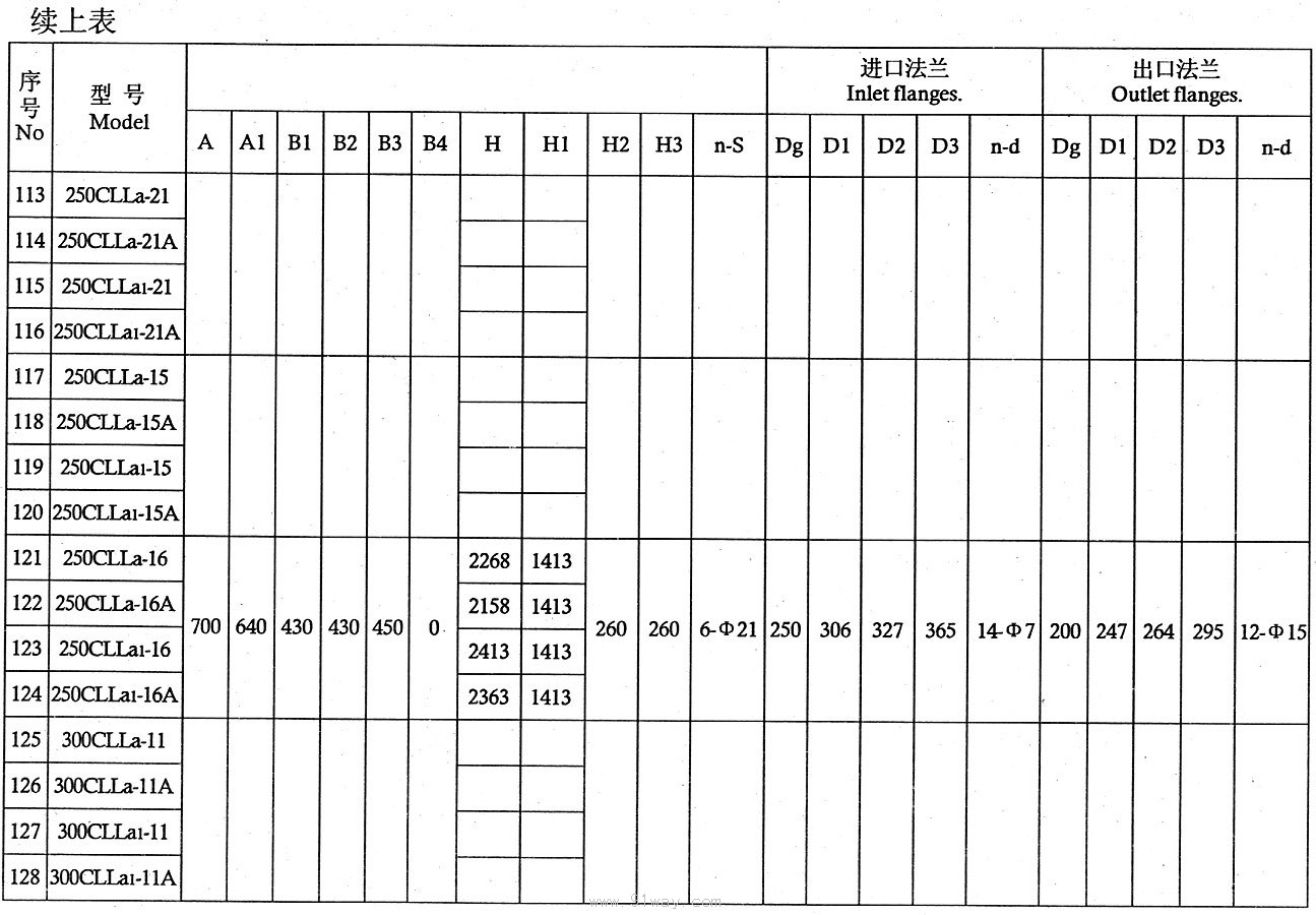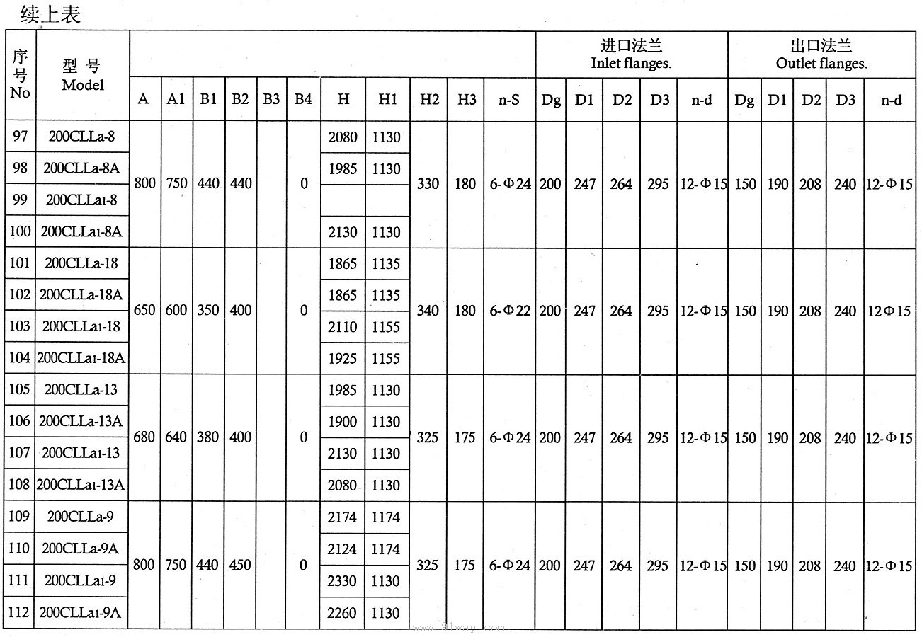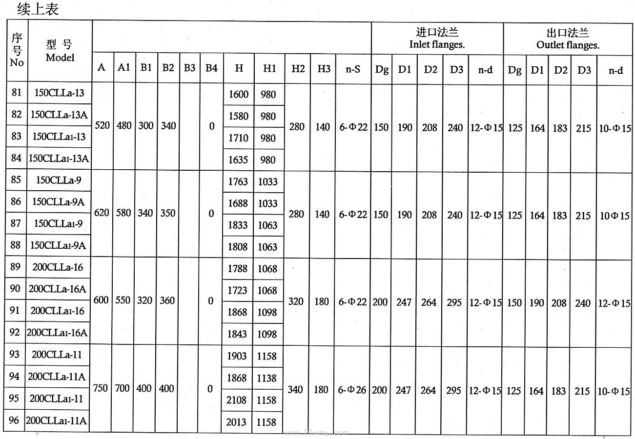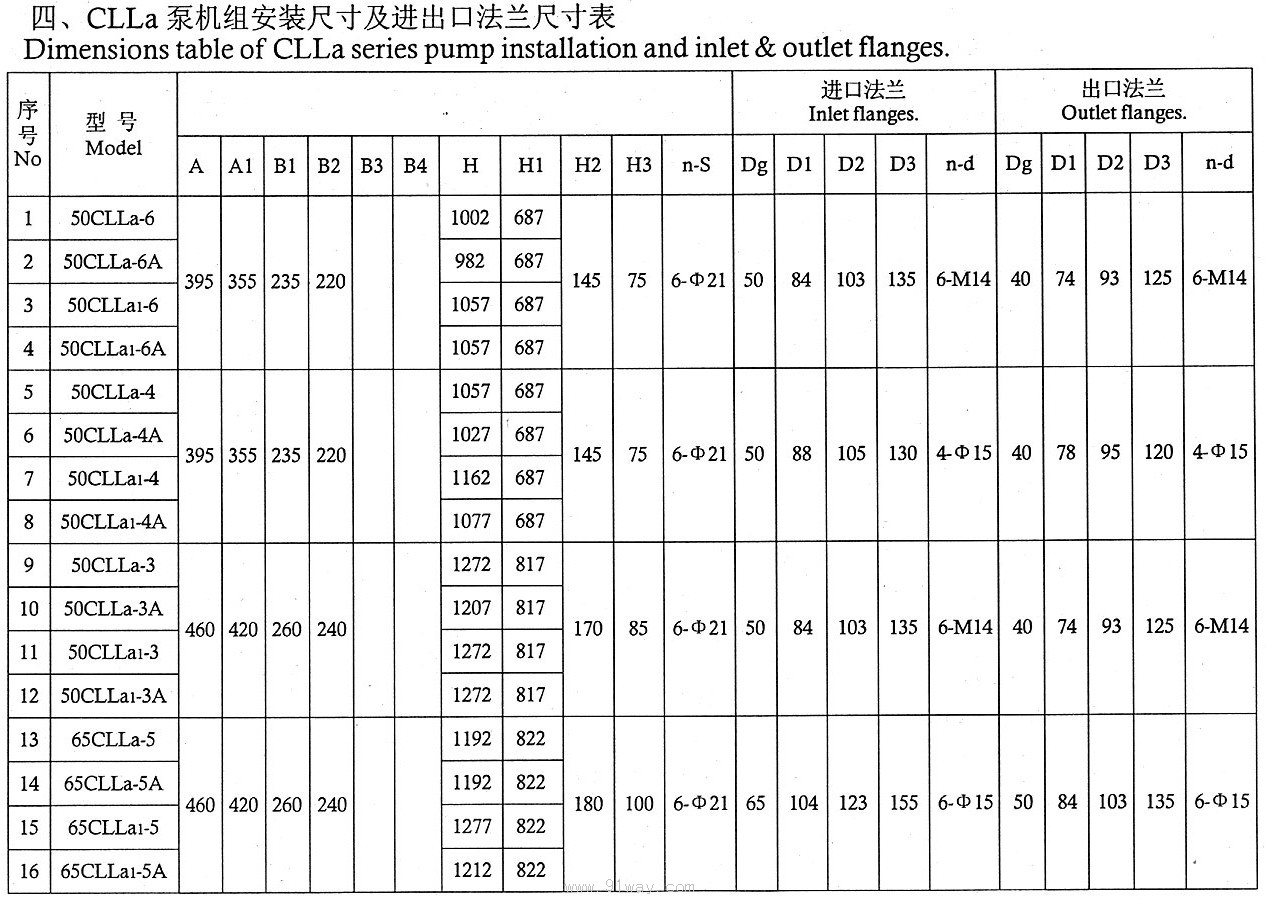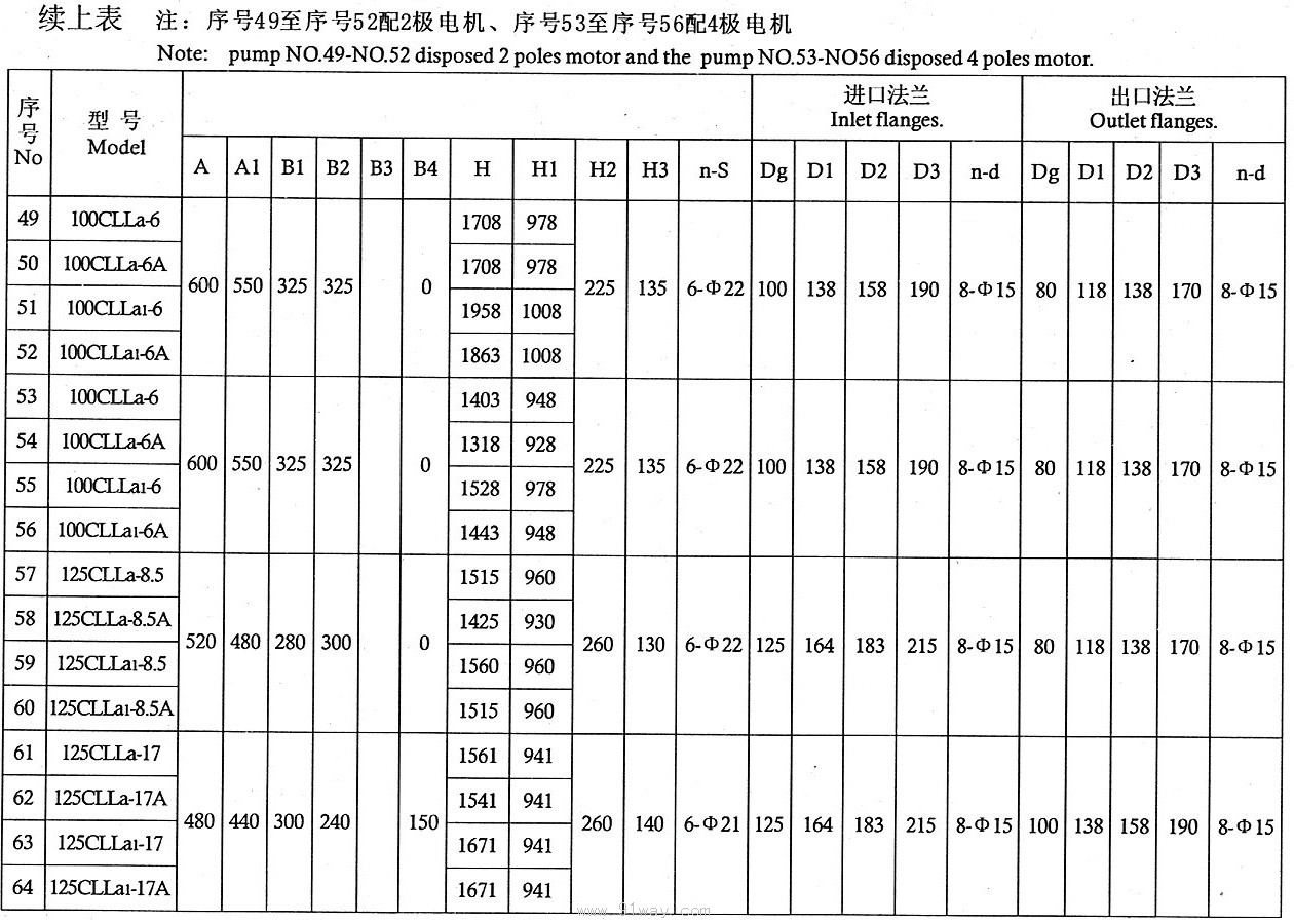 CLLA型船用立式離心泵技術參數4