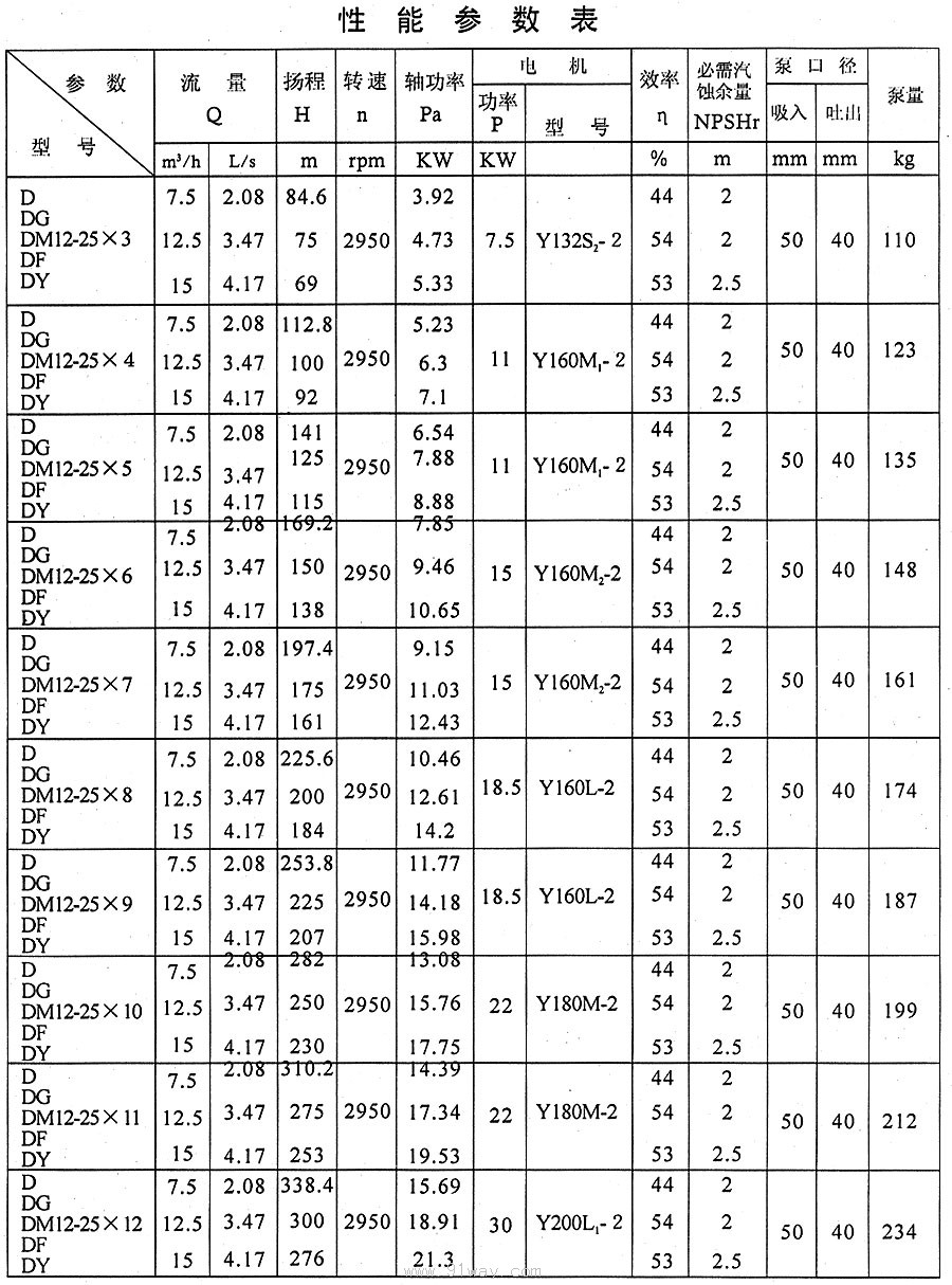 D、DG、DM、DF、DY型多級離心泵技術參數11