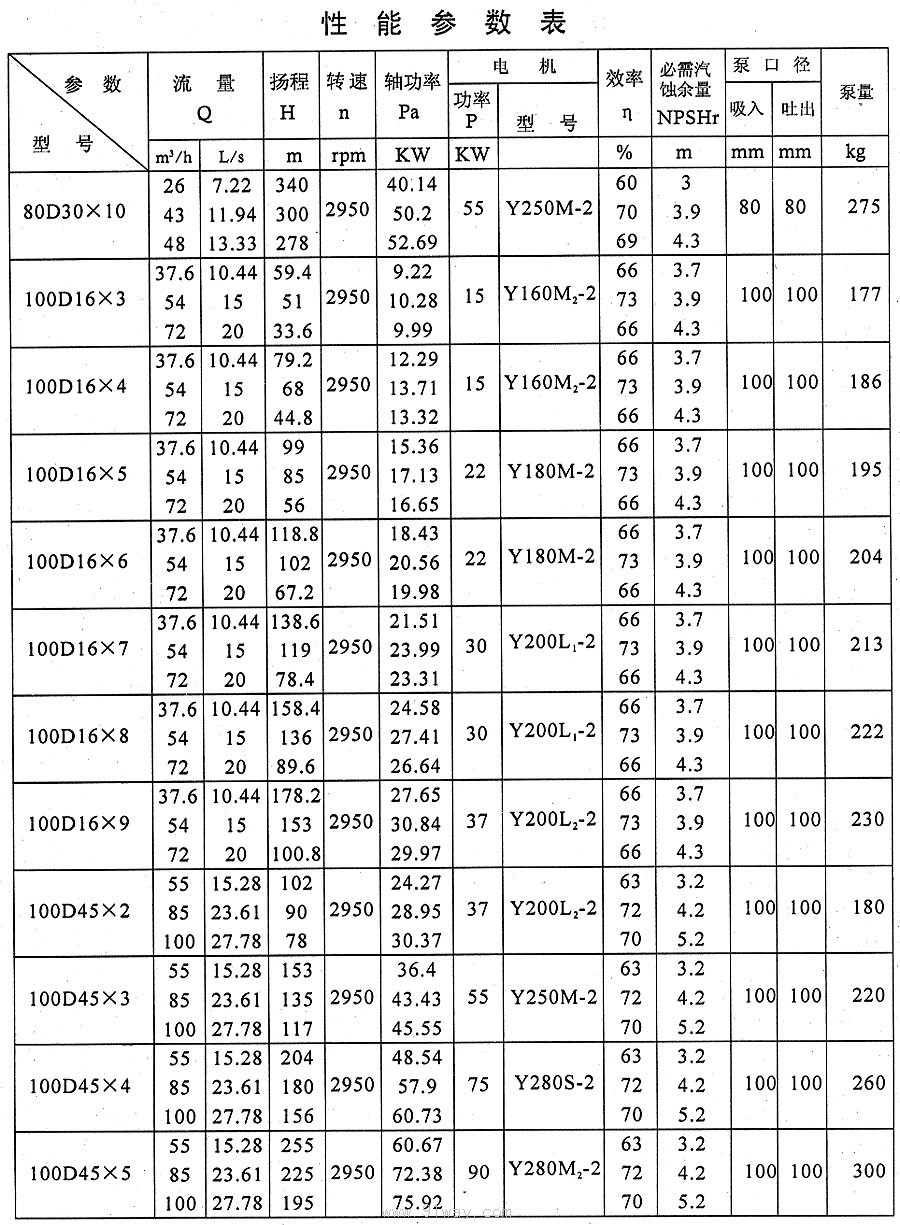 D、DG、DM、DF、DY型多級離心泵技術參數2