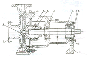 4、當從吸入口看,葉輪為逆時針旋轉時,葉輪與泵軸可用右螺紋固定,或者用葉輪螺母和止退墊圈固定. 葉輪和副葉輪輪轂端面設有密封圈,進行可靠的密封,防止腐蝕性介質腐蝕泵軸。