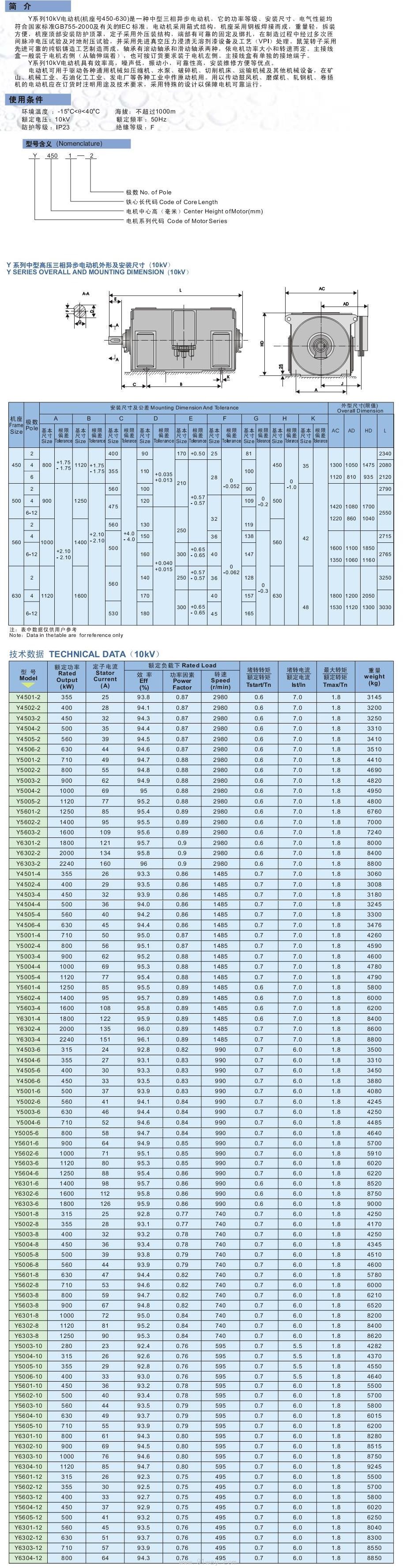 | 產品名稱: | Y系列10kV電動機(蟣座號450—630) | |||||