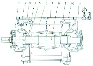 | 2 | 側蓋 | 6 | 泵體 | 10 | 軸封供水管路系統 |