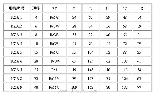 用途與特點: JN-KZA開閉液壓快速接頭適用于以冷凍機油、水、空氣為介質的場合,可用于油壓機械、化學、船舶配件管等。公稱壓力為 320kgf/cm 2 , 介質溫度為 -20 ℃ ~+80 ℃。 材質: 碳鋼,不銹鋼