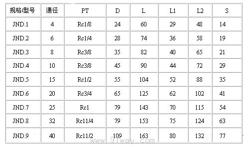 特點: JND開閉式液壓快速接頭適用于以冷凍機油、水、空氣為介質的場合,可用于油壓機械、化學、船舶配件管等。公稱壓力為320kgf/cm2,介質溫度為-20℃~+80℃。 材質:碳鋼,不銹鋼