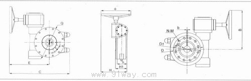 該產品是一種90°回轉型驅動裝置,適用于球閥、蝶閥、旋塞閥等類閥門。特殊型可輸出360°轉角。產品共有12個型號。通常增設一級蝸輪減速機構。為又級傳動,以減少手動操作力。