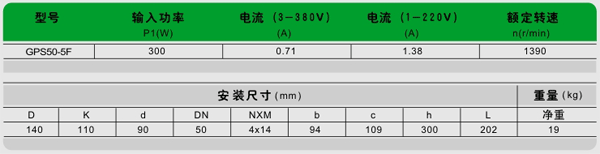 GPS50-5F型三相管道屏蔽電泵技術數據: