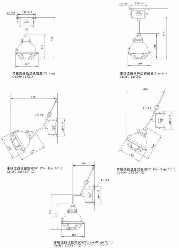 CeG58-125增安型防爆燈(e)型號含義 Model Meaning