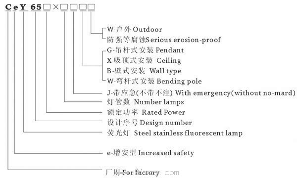 | 產(chǎn)品名稱: | CeY65-不銹鋼防爆熒光燈(增安型e) | |||||