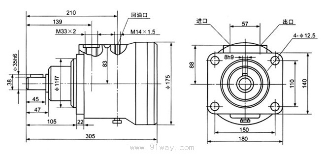XM-F40L定量泵(馬達(dá))的外形尺寸及安裝尺寸