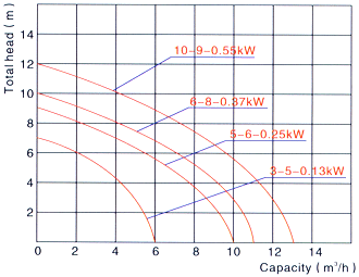 | 型號 | 揚程(m) | 流量(m3/h) | 電壓、頻率(V、Hz) | 功率(kw/HP) | 配管內徑(mm) | 外形尺寸(cm) | 重量(kg) |