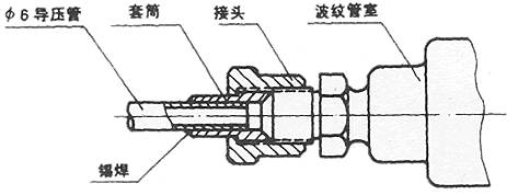 旋下接頭將直徑為6毫米的金屬導壓管的一斷錫焊在套筒上,然后旋緊接頭使連接管密封,