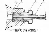 如下圖所示:將密封墊圈(3)套連接頭(1)的一端上,然后將接頭(1)放入波紋薄膜室(4)的螺紋接口中并用螺紋套(2)擰緊,用橡皮管或塑料管套在接頭(1)的另一端上,被控壓介質由橡皮管進入波紋薄膜室(4)內。