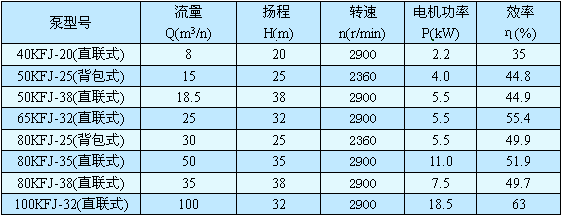 KFJ系列耐腐耐磨襯膠離心泵型號與性能參數(清水介質)