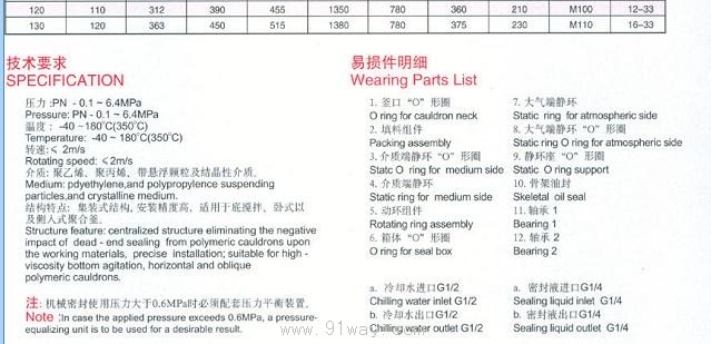 注:機械密封壓力大于0.6MPa時必須配套壓力平衡裝置。