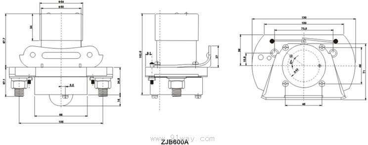 用途 ZJB600A系列接觸器適用于通訊電源及其他電控裝置的控制用。 技術數據 使用條件 1、環境溫度:-25~+40℃; 2、海拔高度:0~2000米; 3、25℃最大相對濕度:90%; 4、固定處的振動:10~50Hz,10m/s2; 5、沖擊:30m/ s2; 6、安裝方向:任意 7、電源電壓波動范圍:0.7-1。1Ue 8、工作制:8H長時 外型安裝圖 線路原理圖 產品型號含義