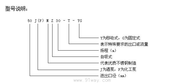 型號說明:例:50J(F)MZ30-T-YG