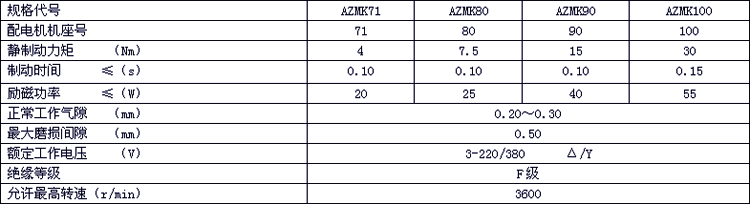 | 產(chǎn)品名稱: | AZMK系列三相交流電磁制動器 | |||||