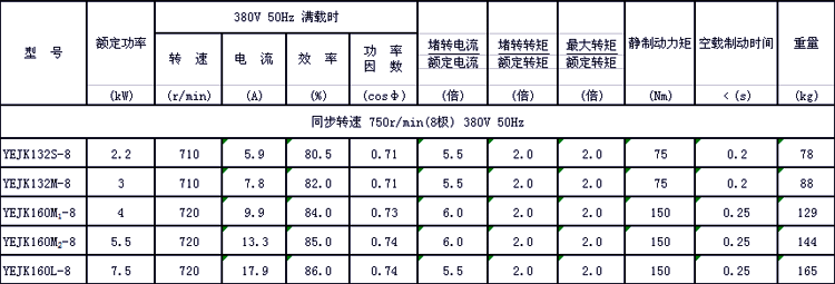1、額定電壓:電機(jī)為AC380V 50Hz,制動(dòng)器為DC99V或DC170V(視規(guī)格而定);