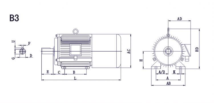 B3型機(jī)座帶底腳,端蓋無(wú)凸緣的電動(dòng)機(jī)
