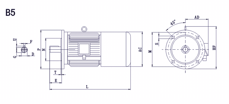 B5型機(jī)座不帶底腳,端蓋上有凸緣的電動(dòng)機(jī)