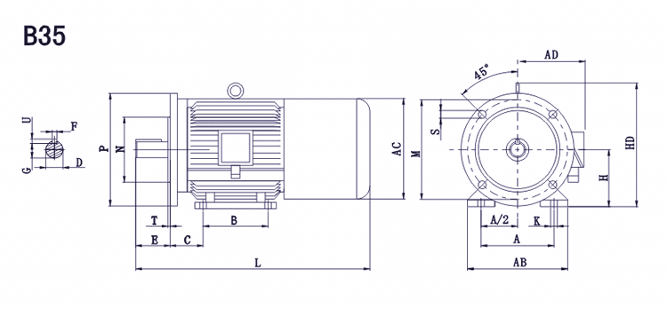 B35型機(jī)座帶底腳,端蓋上有凸緣的電動(dòng)機(jī)