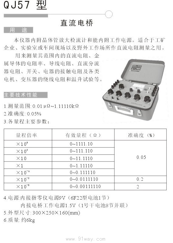 產品名稱:QJ57直流電橋 測量范圍: 0.01μΩ~1.11110kΩ 準確度: 0.05%