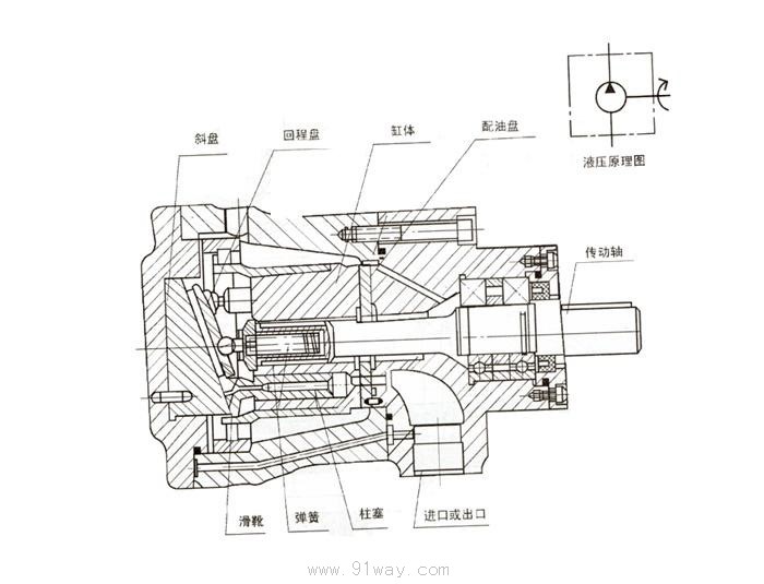 MCY型軸向柱塞泵將具有31.5Mpa壓力的純凈的液壓油輸入到各種油壓機、液動機等到液壓系統(tǒng)中,以產(chǎn)生巨大的工作動力。 同時該油泵可以作為液壓馬達使用。根據(jù)需要,本油泵有多種變量形式。本油泵,油馬達廣泛用于船舶航空、礦山、冶金、壓鑄、鍛造、機床的名類機械中,其特點是體積小、效率高、壽命長、設計先進、結(jié)構緊湊、維護方便。上海水泵廠家上海禹工泵業(yè)歡迎新老用戶選購。 二、MCY型軸向柱塞泵結(jié)構圖: