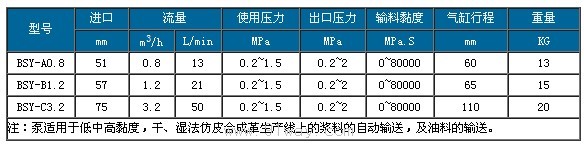 Y型氣動插桶泵可輸送酸、堿、鹽、油品、飲料等介質,廣泛用于化工、石油化工、精細化工、染料化工、環保、水處理、醫藥、食品等部門。BSY型氣動插桶泵(油桶泵、氣動漿料泵、皮革漿料泵、打料漿料泵)專為皮革行業及其他工業行業涂臺漿料輸送設計,具有耐腐、防沉淀、節能等作用,是理想的移動輸送設備。