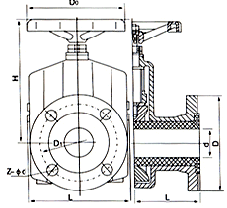 (2) 工作原理:當順轉手輪時,使大小閥桿同時帶動上下閘板,壓縮管套,進行關閉,反轉即行開啟,這樣,閘板在導柱之間上下往復完成閥門開閉工作。另外,因橡膠管套承力,因此在開關時,操作人員旋轉手輪時只要感到適量抵觸,均己達到開閉極點,切勿盡力或多人輔助,禁用其他工具開閉。