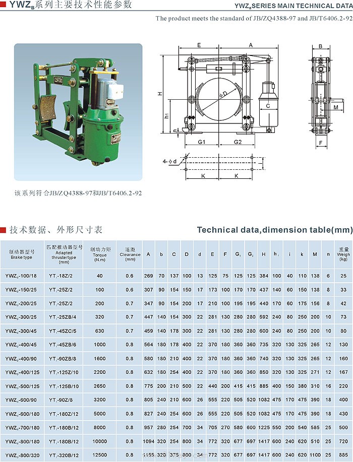 YWZB系列電力液壓塊式制動器