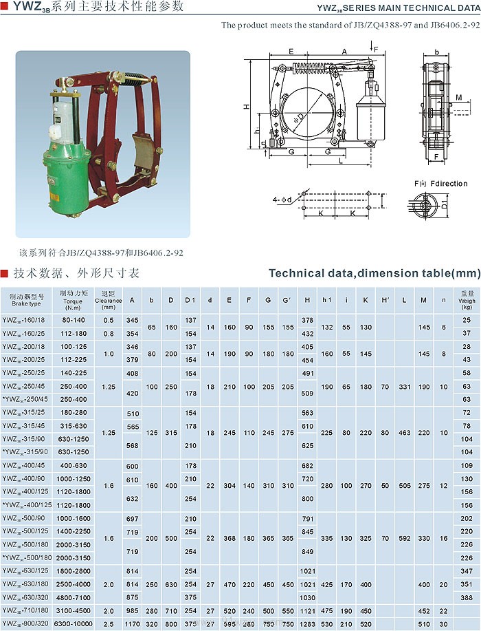 | 產(chǎn)品名稱: | YWZ3B系列電力液壓塊式制動(dòng)器 | |||||