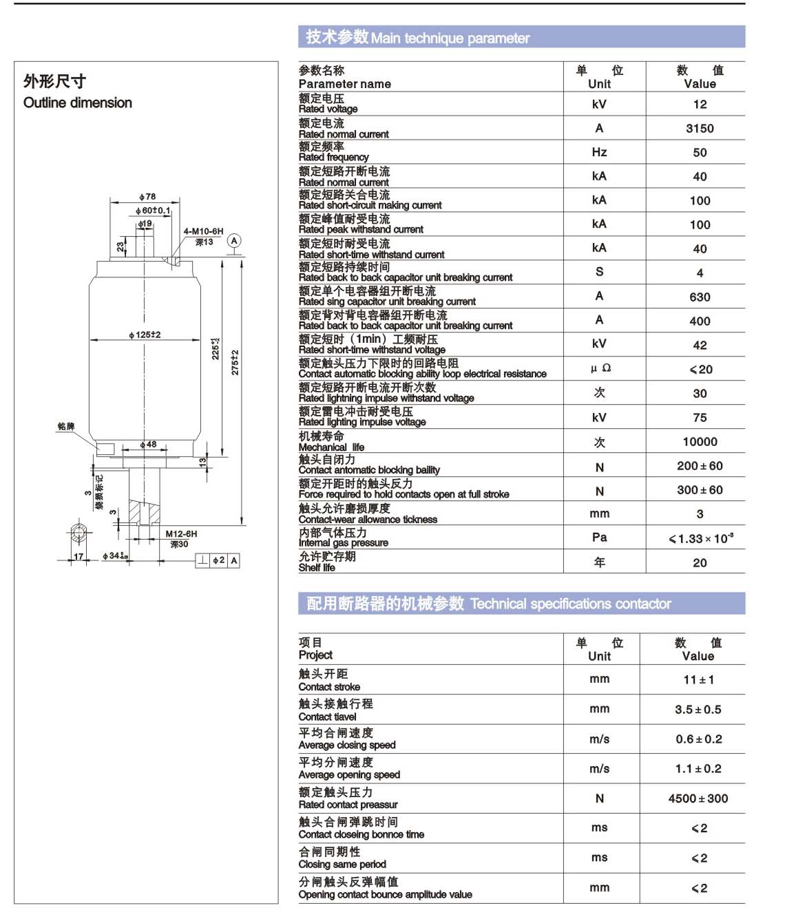 | 產(chǎn)品名稱(chēng): | BD-12/3150-40型斷路器用真空滅弧室 | |||||