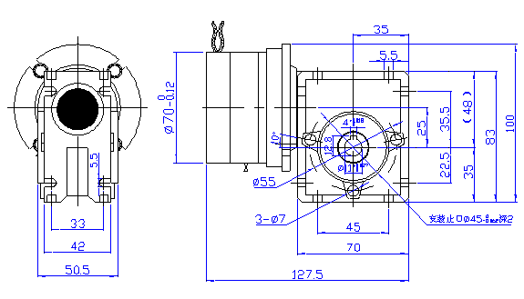 1.55LYX03系列蝸輪蝸桿減速稀土永磁直流力矩電動機介紹: 55LYX03系列蝸輪蝸桿減速稀土永磁直流力矩電動機具有體積小,轉矩大,低轉速,運轉平穩,控制簡便等特點,廣泛應用于各種機械設備和自動控制系統中作驅動元件。 2. 技術參數: 3.55LYX03系列蝸輪蝸桿減速稀土永磁直流力矩電動機外形及安裝尺寸