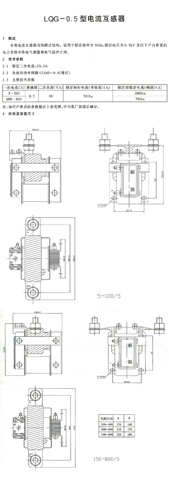 LQG-05型電流互感器為戶內裝置線圈式電流互感器適用于額定頻率為50HZ,電壓為500V以下的交流線路中作測量電流、電能及繼電之用。