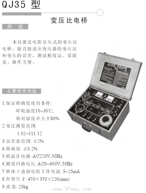 QJ35變壓比電橋產品名稱:QJ35變壓比電橋 變比范圍: 1.02~111.12 準確度: 0.2%