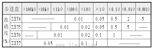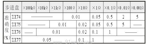 ZX75零位電阻值Ro為最小一個(gè)步進(jìn)值(0.01Ω),因零位電阻是一個(gè)整數(shù)值,使用方便。
